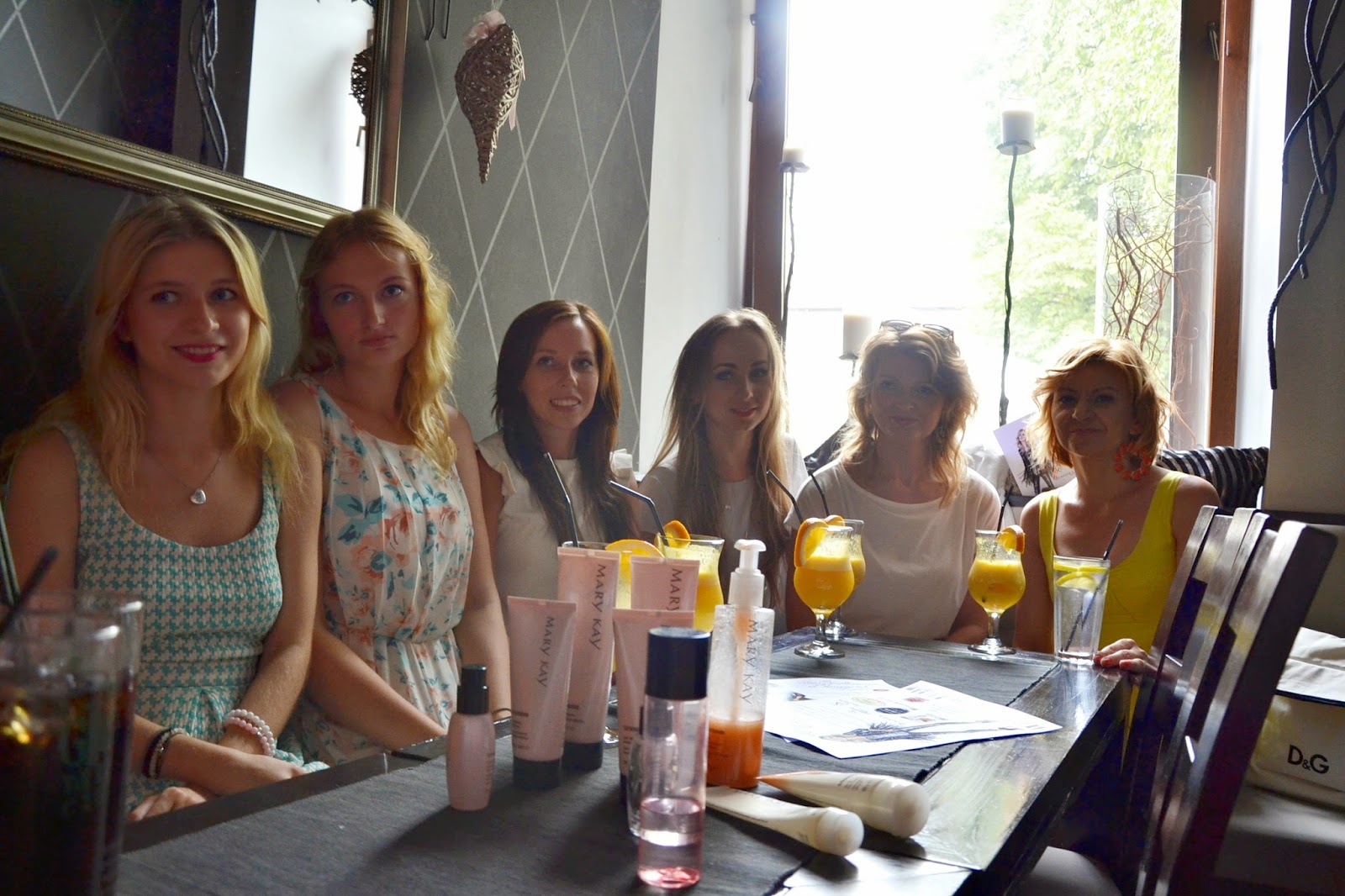 Dwie urocze Panie przyniosły kosmetyki i nowe zapachy. Mogłyśmy wszystko wypróbować i pooglądać, przy tym dowiedziałyśmy wielu ciekawych nowinek kosmetycznych, które będziemy mogły wykorzystać przy wykonywaniu makijażu. Wykorzystując sytuację, od razu zrobiłyśmy małe poprawki makijażowe.