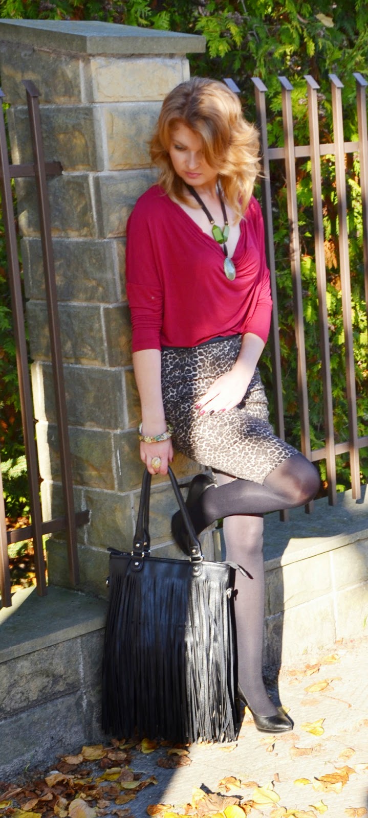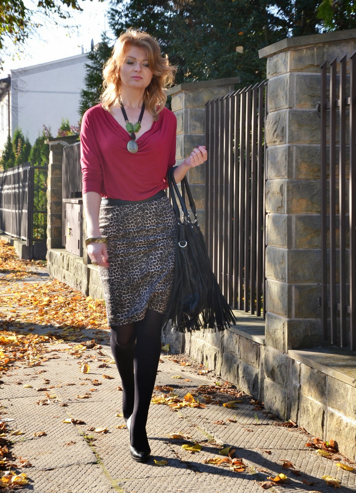 Panterka, to jeden z trendów na jesień i zimę. Chcąc być modną i na czasie, koniecznie musisz mieć coś w panterkę. Może to być spódnica, bluzka, spodnie czy nawet kurtka i płaszcz. Mnie bardzo urzekła spódnica, bez której nie mogę się obejść i która sprawiła, że moja stylizacja wygląda modnie, elegancko no i odważnie.  Jeśli jednak boisz się, że masz za dużo wzoru na sobie i że za bardzo rzucasz się w oczy, zainwestuj w dodatki typu torebka, apaszka, czy delikatny pasek.