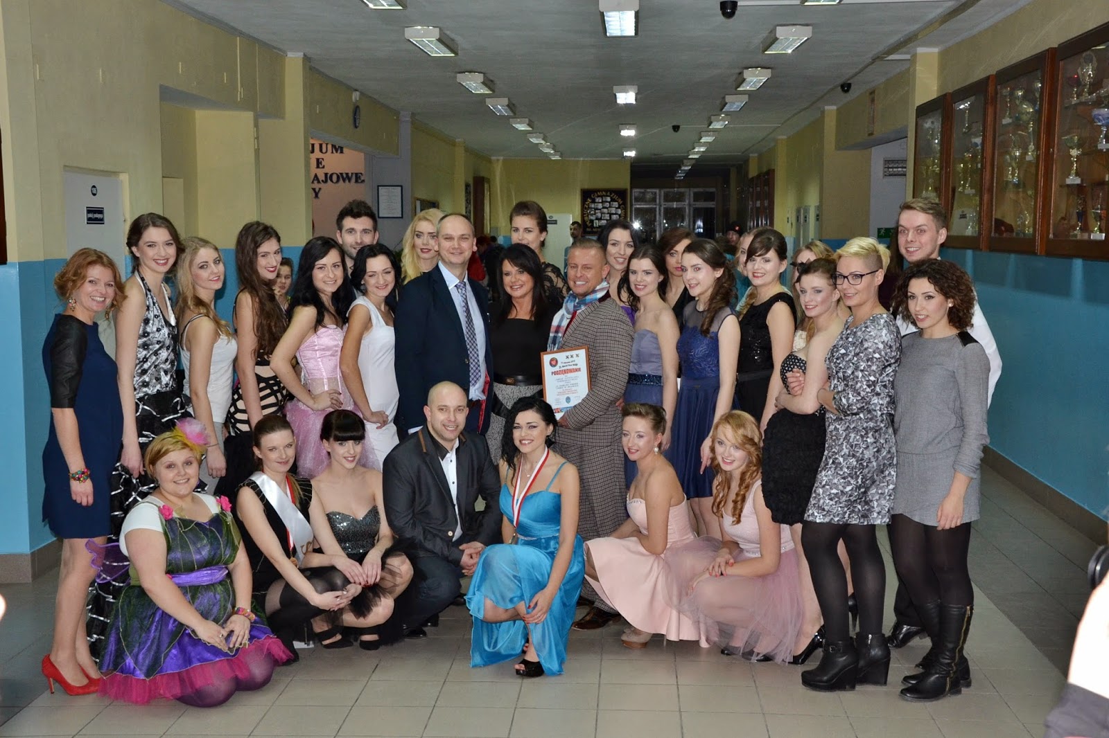 Cała ekipa: Firma, która sponsorowała pokazy AMICUS oraz Galeria Larin, Devu, modelki i modele, fryzjerka, wizażystki oraz stylistka.